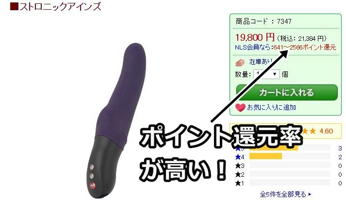 また、このショップが業界一の割引サービスでも有名ですね。無料会員になると買い物する度に還元ポイントがもらえるサービスです。このサービスがあるため、実はほとんどの大人のおもちゃがNLSで最も安く買えてしまう事はここだけの秘密ですwww