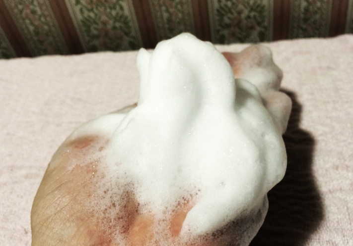 使用量は女性の場合は『1円玉大くらい』の量がいいんだそうです。で、これをぬるま湯でたっぷりあわ立てると…