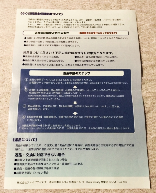 最近の通販コスメには、ほとんどこのような返金保障がついていますので、ある意味必須のサービスとして考えておきましょう!