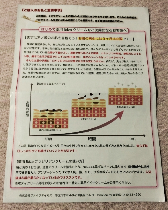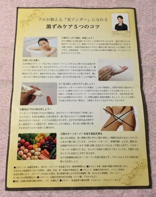 黒ずみ対策には少し時間がかかる理由も説明されているので、諦めずにずっとケアを続けるためのお守りとして、私の姉はこのチラシを眺めていたそうですよw