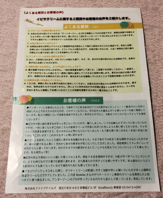 多いな!ってのが第一印象だと思います。これは後々になてわかったことなんですが、このイビサクリームを開発したibiza beuatyさんは、元々はデリケートゾーン等の脱毛エステで有名だったらしいです。