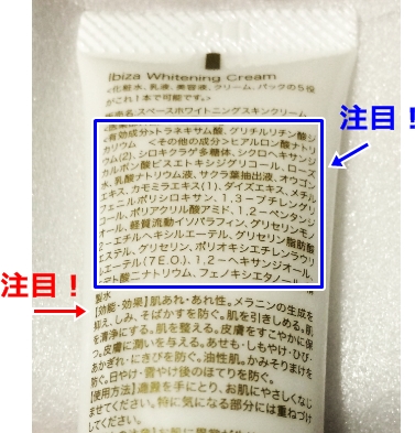使用感については、少し気になる事を言ってました。それが『肌がスベスベしてくるのが二週間くらいで感じたので、信じてもう少し続けようって気になれた』って部分です。これって何でだろうって思って、イビサクリームを手に取りしげしげと眺めていたら一つの発見が…
