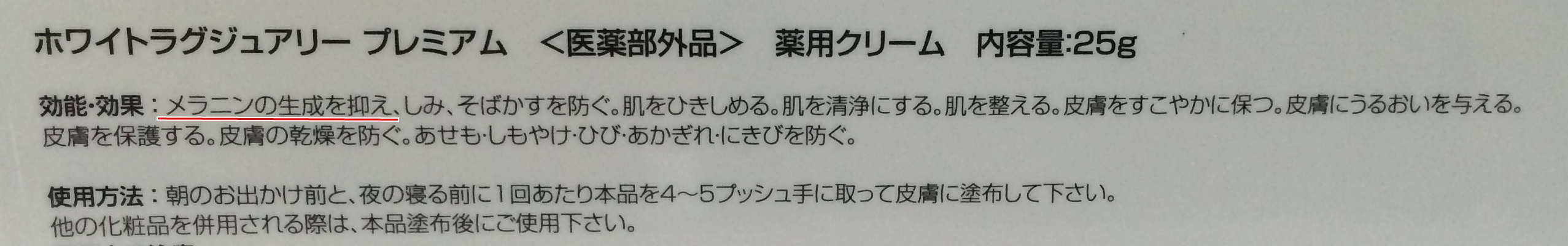これは空き箱の写真を拡大したものなのですが、「メラニン色素の抑制」ってしっかりと記載されているのがわかると思います。