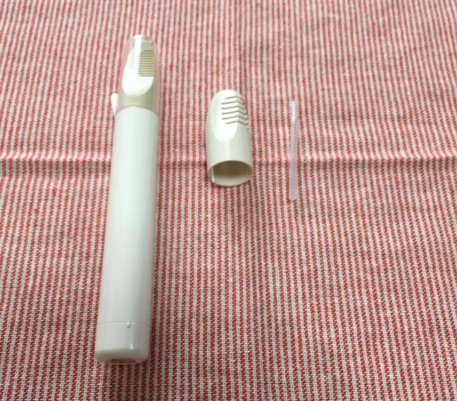 Vライントリマー、そのシルエットはなんだか電動歯ブラシみたいな感じです。使用には単三乾電池が二個必要ですが、これは別途購入が必要(少し残念…)