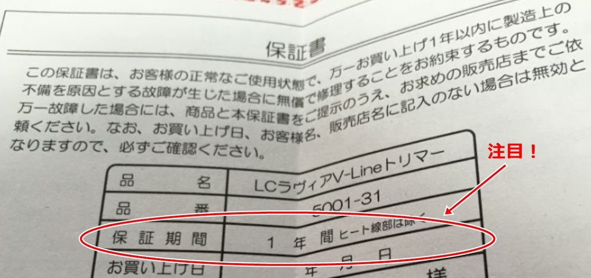 少し以外だったのがこの保証書でした。このようなアンダーヘアケアグッズって、商品の特殊性のためか保障がついてない粗悪品ってすごく多いと思いませんか?