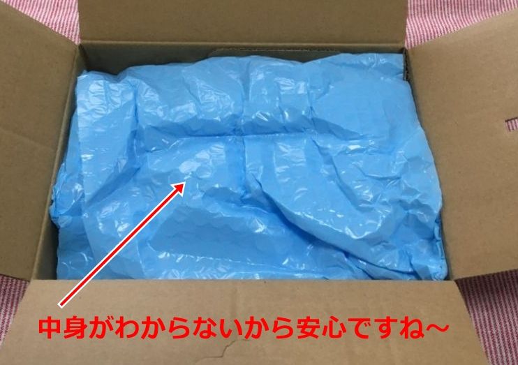 家族と同居している女性にとっては、中身がばれると少し恥ずかしいグッズですが、LCさんの通販はいつも上の写真のように、中身が見えないブルーの梱包材に包まれて届きます。