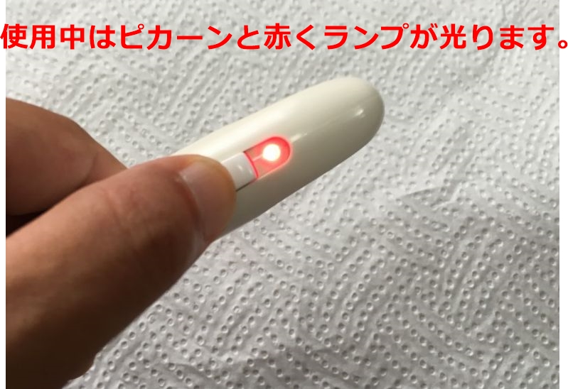 上の写真のようにアンダーヘアを巻き込んであげて、かるく皮膚から浮かせるくらいの位置で、本体上部のボタンを押すと…