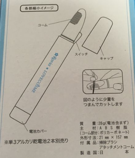 このトリマー、使用には単三乾電池が二個いりますが、残念ながら付いてきません。残念ですがお値段を抑えるための戦略でしょうし、、、、